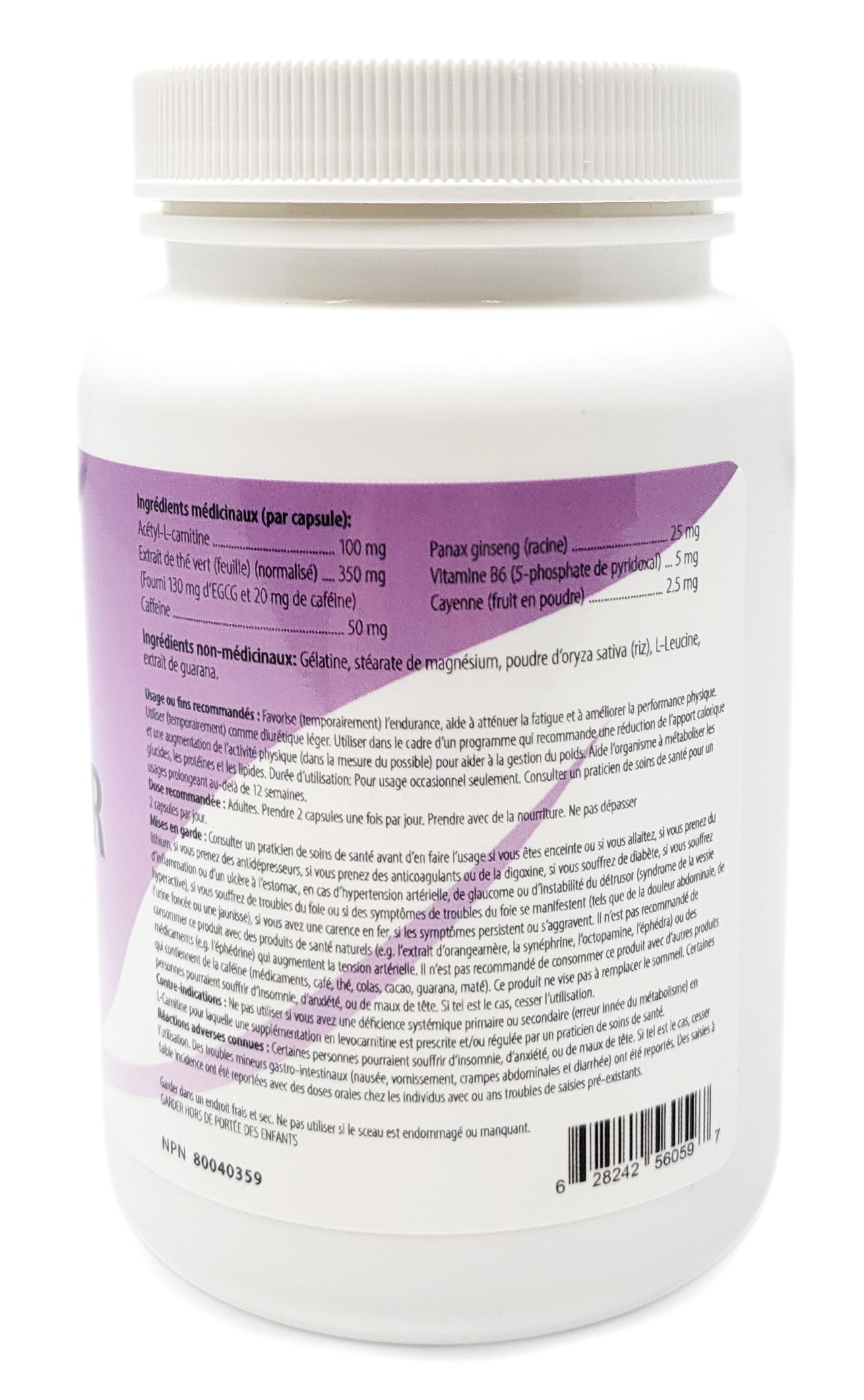This unique blend contains Panax Ginseng, Vitamin B-6, cayenne to help with blood glucose and thermogenesis, and a high concentration of Acetyl L-Carnitine - which facilitates the use of fat as an energy source and is a powerful neuroprotective antioxidant.