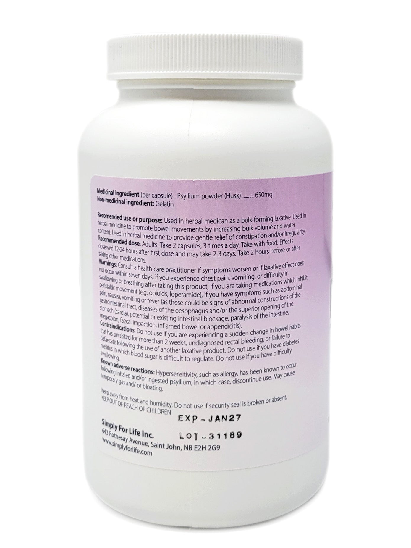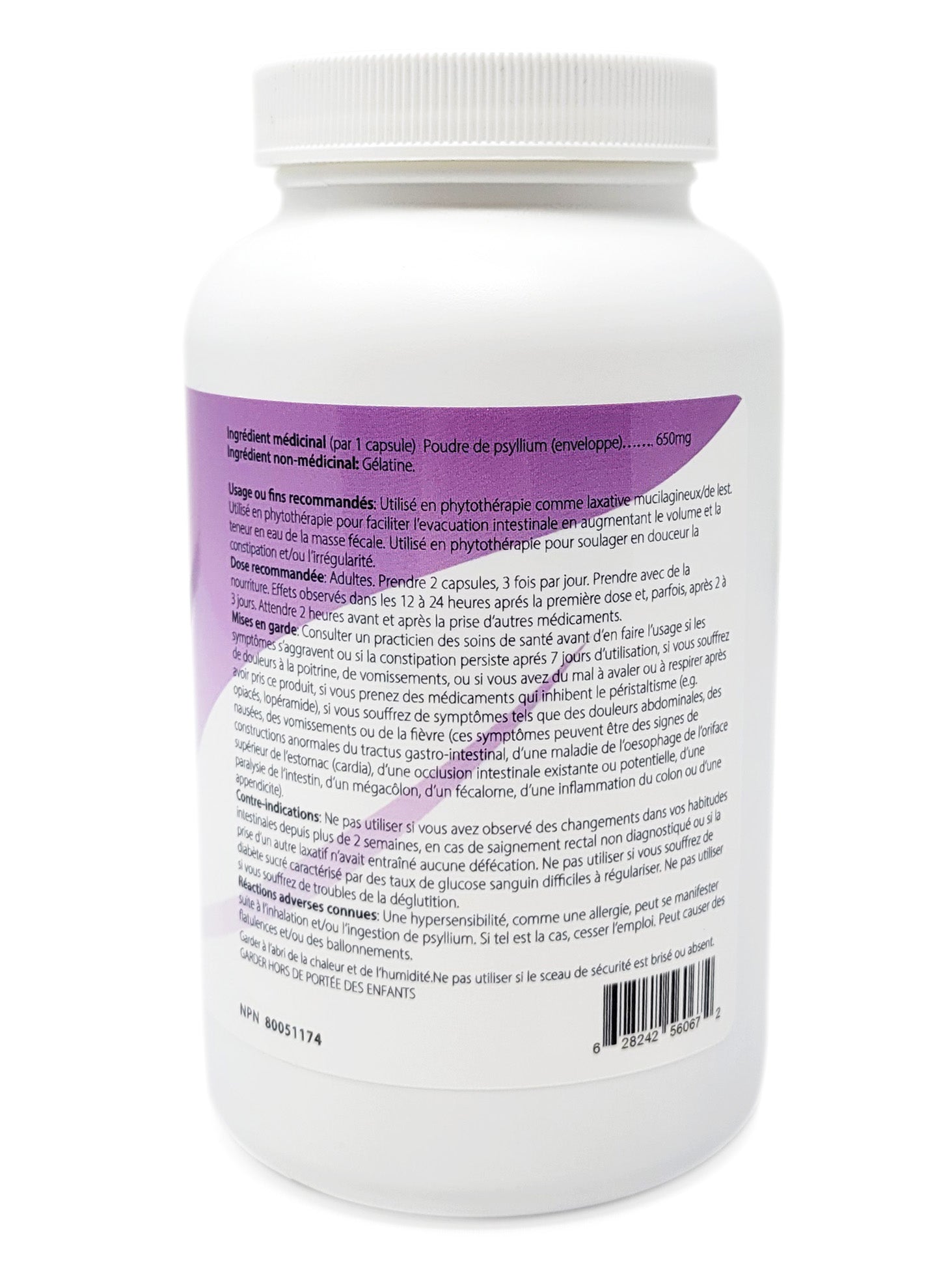 - Psyllium (plantago ovata, husk) – 650mg