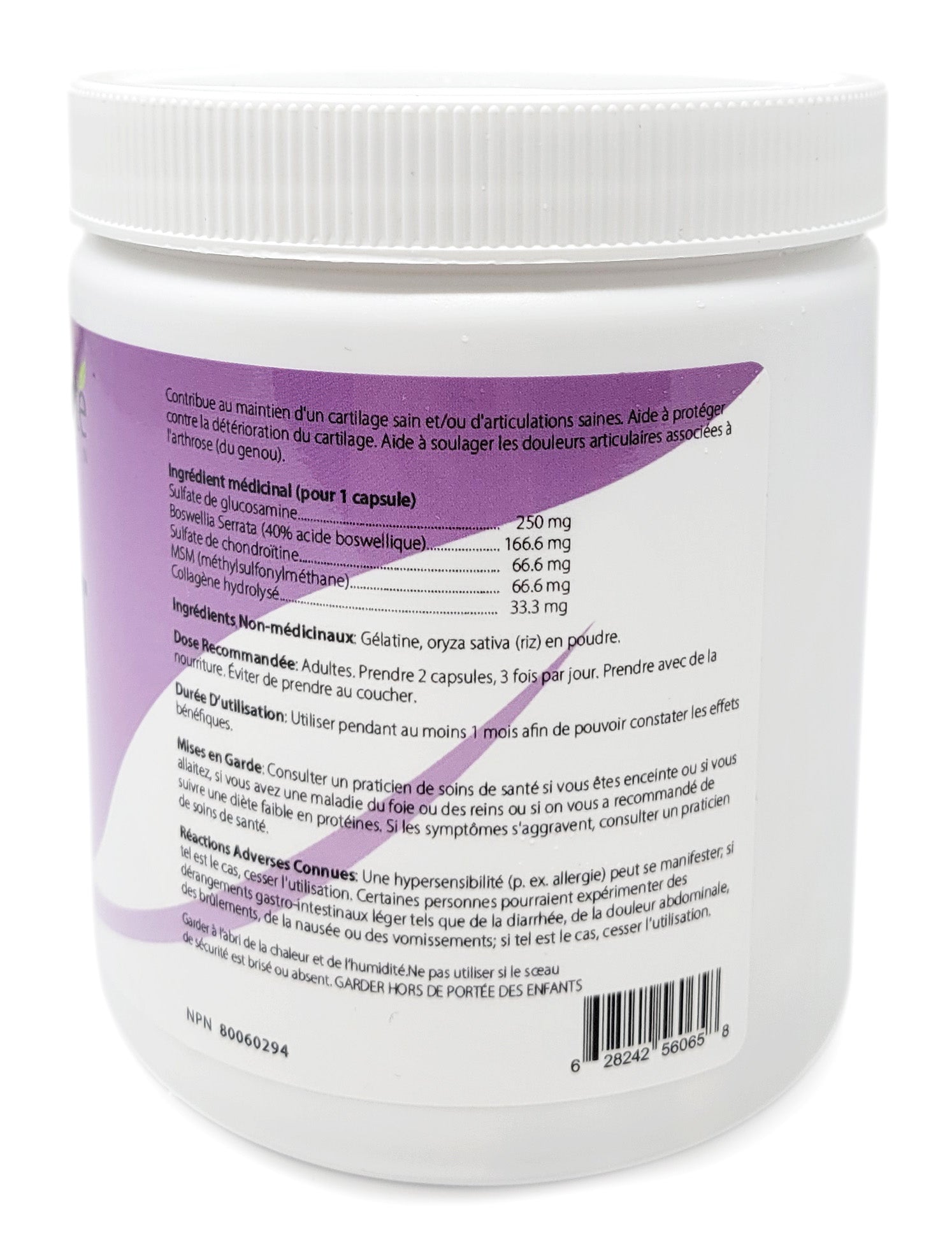 USAGE OU BUT RECOMMANDÉ: Un facteur dans le maintien d’un cartilage sain et / ou de la santé des articulations. Aide à protéger contre la détérioration du cartilage. Aide à soulager les douleurs articulaires associées à l’arthrose.