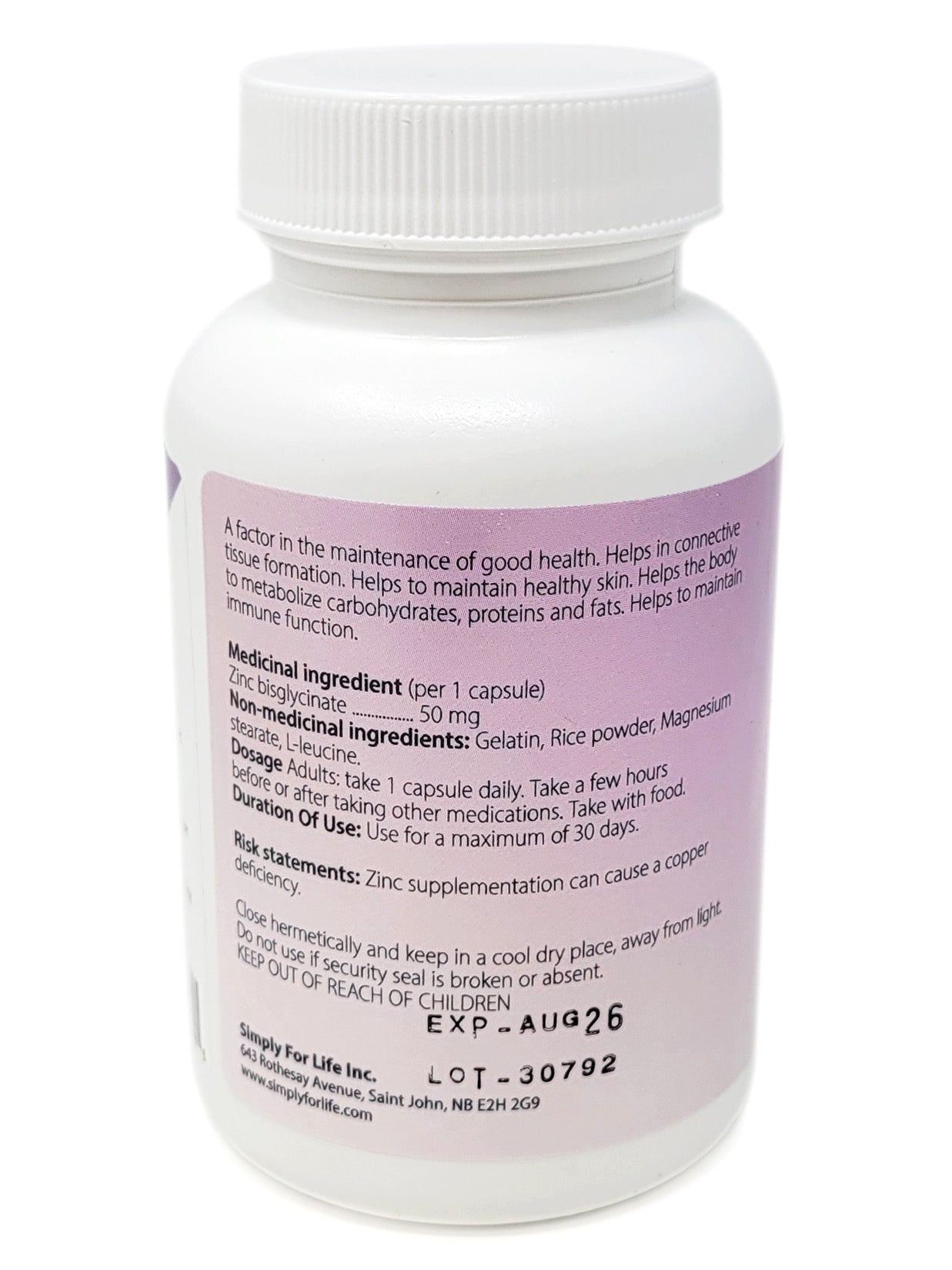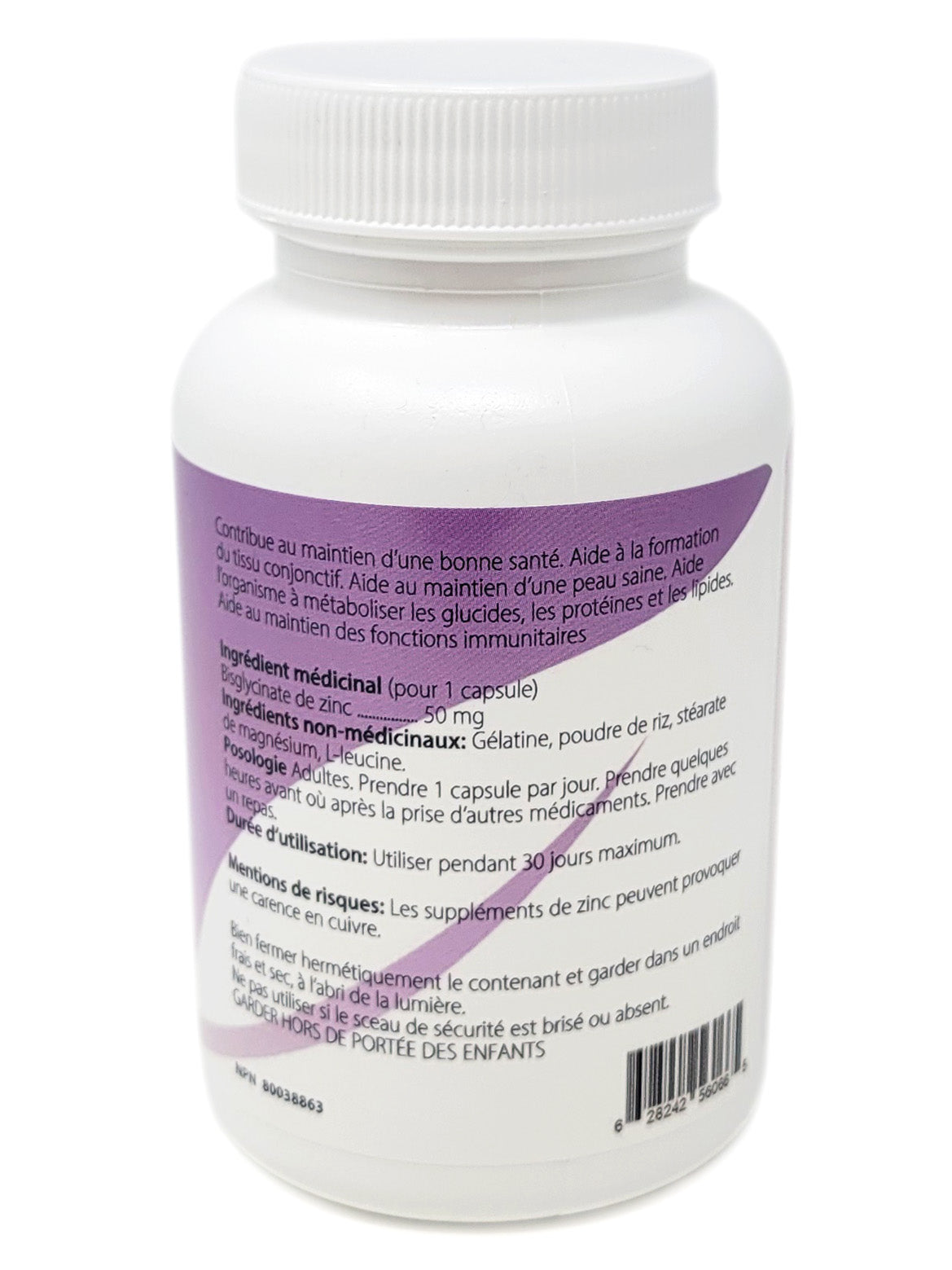 EFFETS INDÉSIRABLES CONNUS: La supplémentation en zinc peut provoquer une carence en cuivre. Conserver dans un endroit frais et sec. Ne l’utilisez pas si le sceau est brisé ou manquant. Tenir hors de portée des enfants.